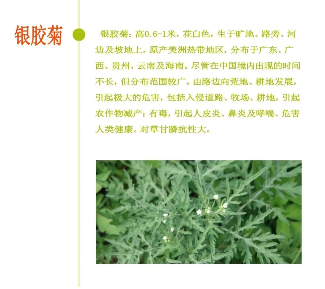 主要表现为部分阔叶杂草特别是菊科抗性上升尤为明显,甚至华南局部地区表现无效。