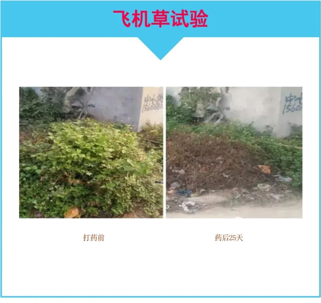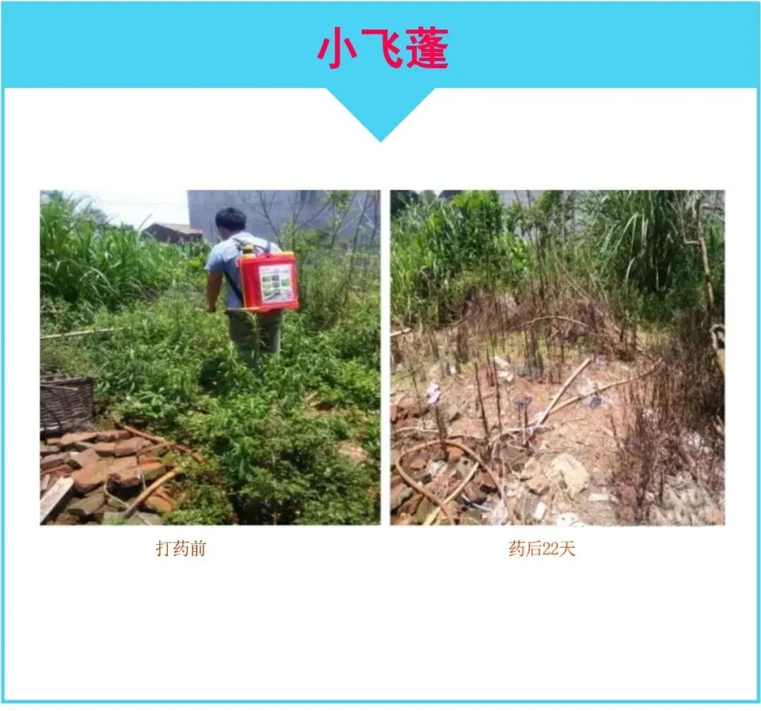 4、高性价 控草期长,解决抗性杂草问题尤其是阔叶藤蔓类顽固杂草,像马齿苋、铁苋菜、藜、苘麻、田旋花、小飞蓬、空心莲子草、雾水葛、篱栏网、长芒苋、络石藤等。