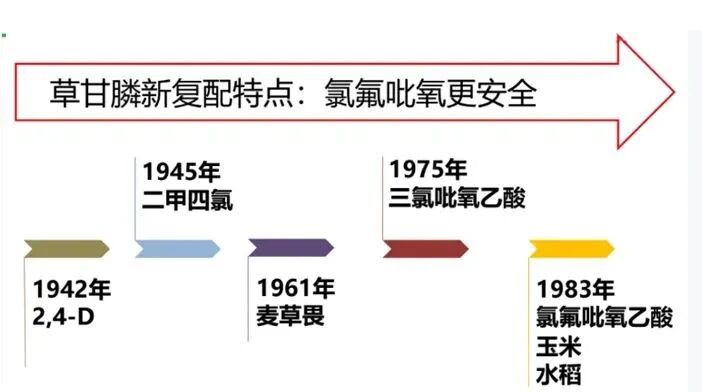 1974年至今,草甘膦使用40多年,唯有复配才是解决抗性的根本途径。